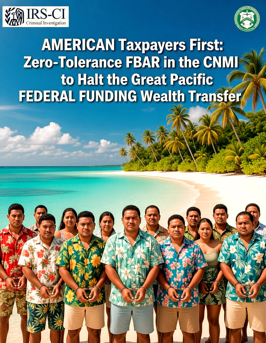 #TaxpayersFirst #ZeroToleranceFBAR #CNMIRemittanceDrain #AmericaFirstPacific #StopTheWealthTransfer #FBARenforceCNMI #SecureTheMarianas